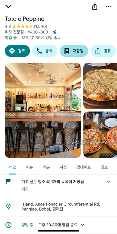 그래서 보홀 번화가에서 식사하러 나가시기 전에 연락해서 예약 잡으시는 걸 추천드려요.