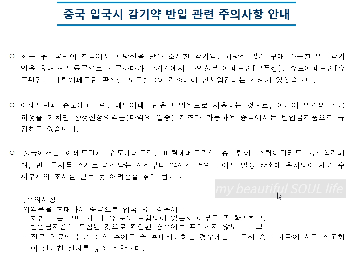 최근 한국 감기약중에서 몇몇 성분 때문에 보안 검색에 걸린 케이스도 있고 해서